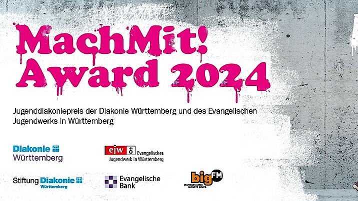 Stuttgart, 7. März 2024. Bis zum 30. Juni 2024 können sich Jugendliche und junge Erwachsene, die sich in Württemberg sozial engagieren, für den Jugenddiakoniepreis bewerben. Der MachMit!Award würdigt das vielfältige Engagement junger Menschen und rückt es ins Licht der Öffentlichkeit. Verliehen wird der Preis von der Diakonie Württemberg und dem Evangelischen Jugendwerk in Württemberg. Er ist mit Preisgeldern in Höhe von insgesamt 3.500 Euro dotiert.