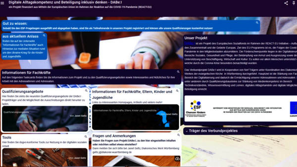 DABe:I war ein Verbundprojekt verschiedener diakonischer Träger unter der Koordination des Diakonischen Werks Württemberg. Im Jahr 2022 fanden kostenlose Qualifizierungen für Fachkräfte statt. Außerdem wurden Qualitätsdialoge mit externen Expert:innen sowie Fach- und Leitungskräften geführt. Daraus entstand die Handreichung „Digitalisierung in der Kinder- und Jugendhilfe“ sowie ein Digitalisierungs-Check für Einrichtungen.