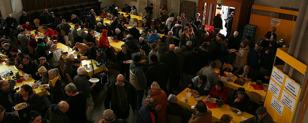 Es gibt Vesperkirchen und Mittagstische als Orte der Begegnung für Menschen, die aus unterschiedlichen Milieus kommen. Menschen, die wenig Geld haben, erhalten günstig ein warmes Mittagessen und erleben Gemeinschaft und Solidarität. Darüber hinaus können hier weitere Hilfen angebahnt werden.