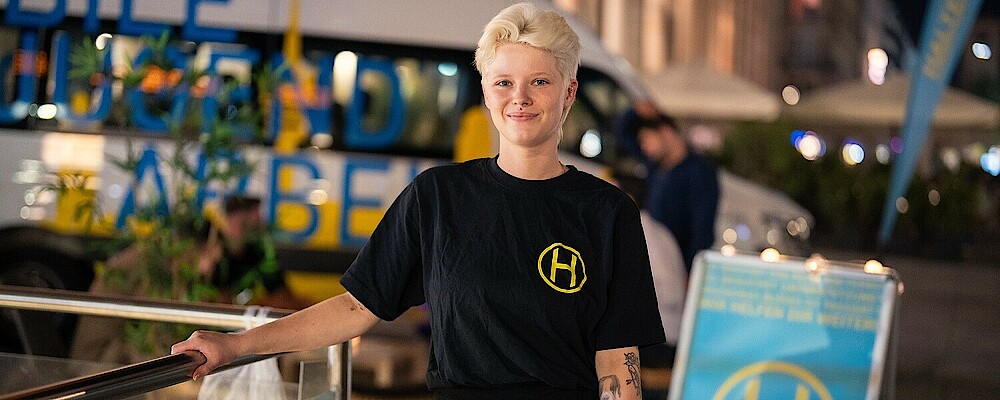Samstagabend in der Stadt. Viele junge Leute sind unterwegs. Manche davon brauchen Unterstützung - zum Handyladen. Zum Quatschen. Oder eine kurze Pause, einen Rückzugsort. Stella ist da. Sie kennt solche Situationen aus der Zeit, in der sie selbst viel unterwegs war. Jetzt möchte sie einfach da sein, wenn jemand Hilfe braucht oder Fragen hat.