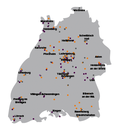 Unsere Mitgliedsschulen und Bildungseinrichtungen erstrecken sich über ganz Baden-Württemberg.